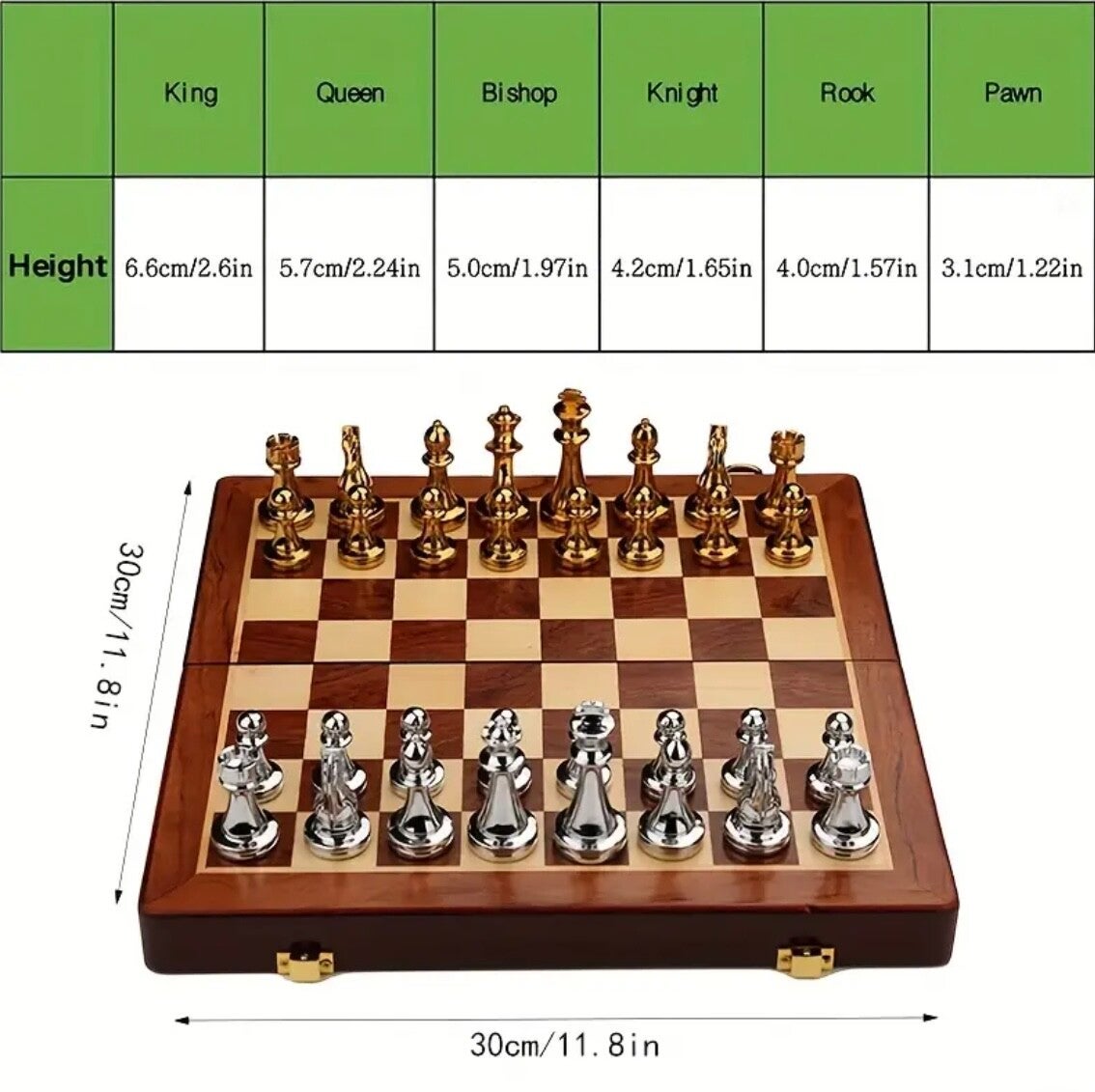Exklusives Schach-Set Standard EditionGrösse: 30 x 30 cmFarbe: Gold und Silber Material: Edels Holzbrett und Figuren aus ZinklegierungIm Lieferumfang enthalten ist 1 Set